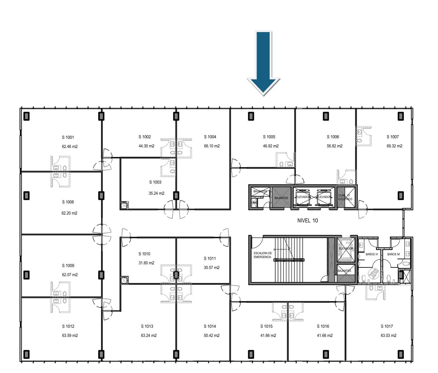 Consultorio médico en renta en Torre Celtara, Hermosillo, ubicado en el piso 10 (Consultorio 1005), con una superficie de 46.66 m², excelente iluminación natural y vista privilegiada, además de estacionamiento exclusivo. El espacio se entrega en obra gris, con disponibilidad inmediata y contrato mínimo de 1 año con flexibilidad negociable. El edificio ofrece amenidades y servicios de primer nivel como elevadores de alta velocidad y de servicio, acceso controlado con vigilancia 24/7, zona comercial en planta baja, elevadores panorámicos, escaleras eléctricas, baños comunes en cada piso, estacionamiento techado para médicos y pacientes, así como administración profesional del condominio.